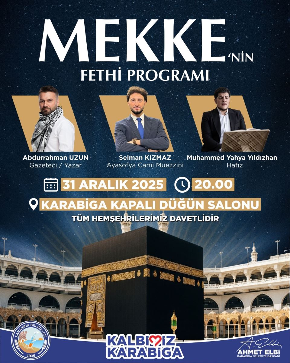 Mekke’nin fethinin manevi ruhu, 31 Aralık akşamı Karabiga’da gönülleri buluşturacak. Başkan Ahmet Elbi, herkesi bu özel programa davet etti.